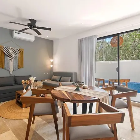 1-slaapkamer Best Private Pool1 Full Br 2Sofabedsamenities Tulum Pueblo appartement bevindt zich binnen 4 km afstand van het Maya Ruïnes van Tulum en biedt een terras met kitchenette. Het appartement van 81 m² heefteen zwembad op het dak en ligt op 10 minuten autorijden van het Las Palmas Strand.